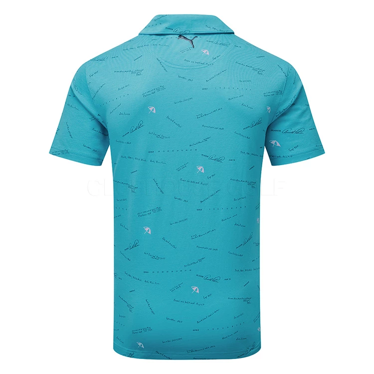 | Puma AP Scorecard Golf Polo Shirt Special Collection In Homage Of A Legend The Puma x Arnold Palmer Collection is inspired by the style, life, and career of a true legend. The internal neck print features iconic moments in Mr. Palmer’s life both on and off the course. Made from 55% cotton, 45% polyester, the AP Scorecard Polo Shirt is designed to offer maximum ventilation and comfort on those warmer days. With DryCELL technology that provides a moisture wicking finish, this polo is an all-round technical shirt that will keep you dry and smelling fresh. Finished with a self collar, graphic print detail and a signature Arnold Palmer umbrella logo on the left chest for added style. Puma golf polo shirts offer the perfect combination of garment technology with a modern sporty design. |